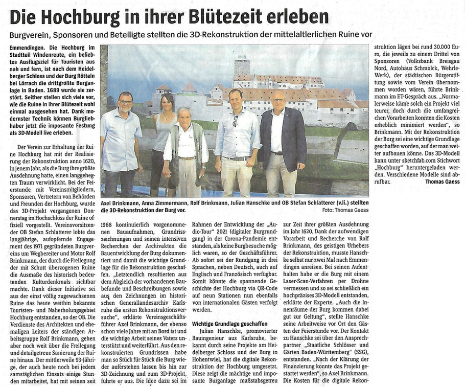 Stiftung unter anderem den Walderlebnispfad im Stadtwald, die White Boards in der Fritz-Boehle-Schule und auch die 3D-Rekonstruktion der Hochburg.